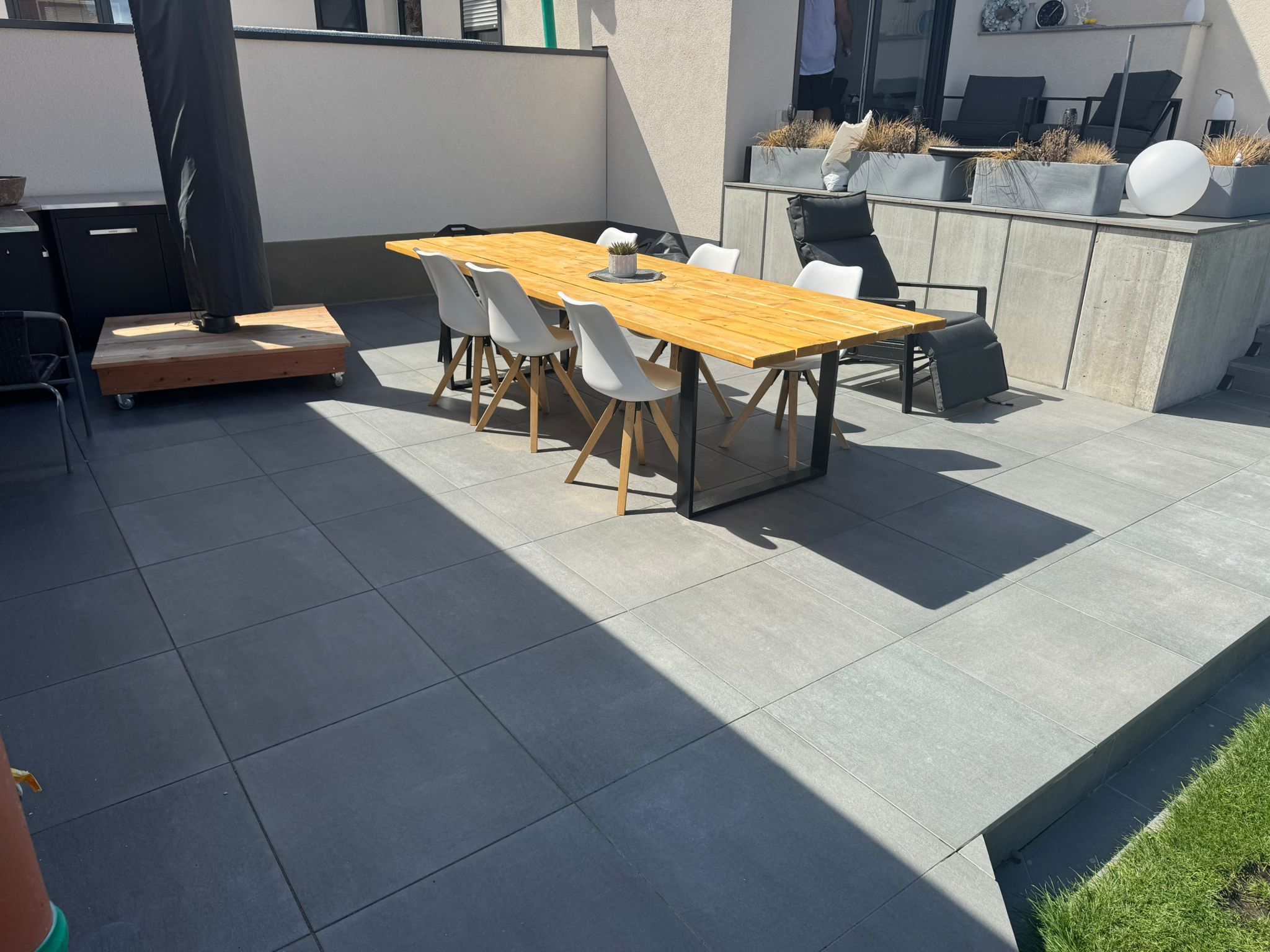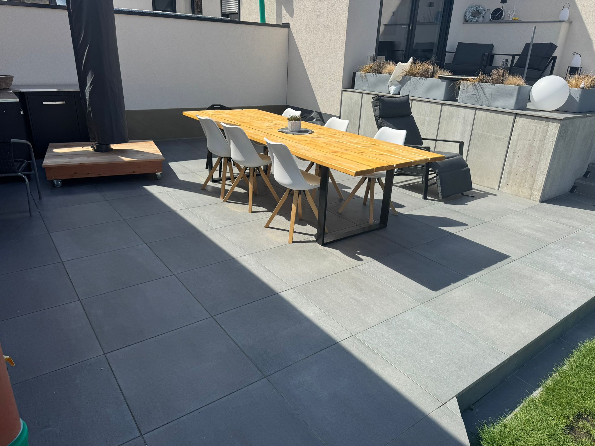 Im Gegensatz zum Beton behält Naturstein seine Farbe über Jahrzehnte hinweg.